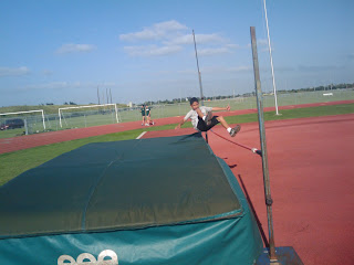 The boys cleared 3'6" at their last 2 meets. This time the bar was raised to 3'8" and they cleared it. Then...raised to 3'10" and they were struggling to get past it.